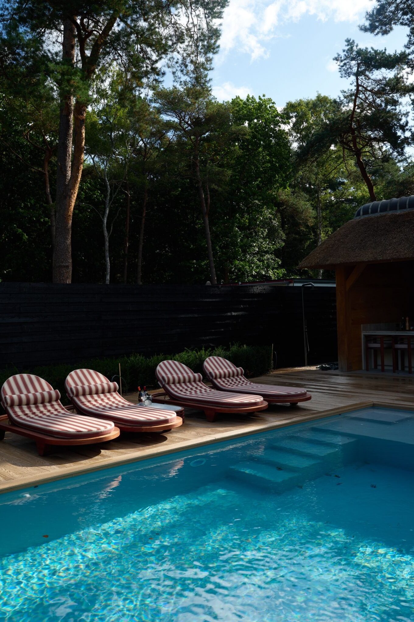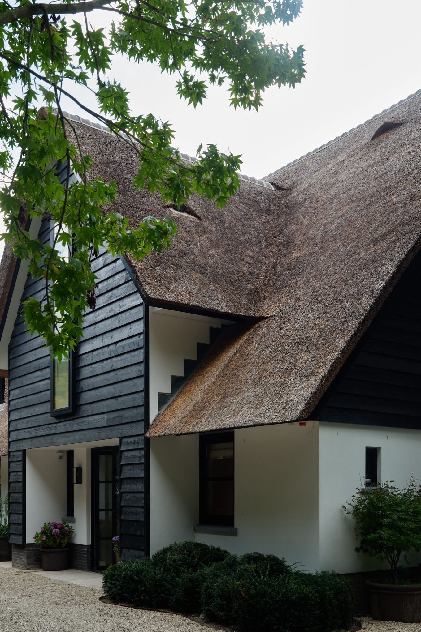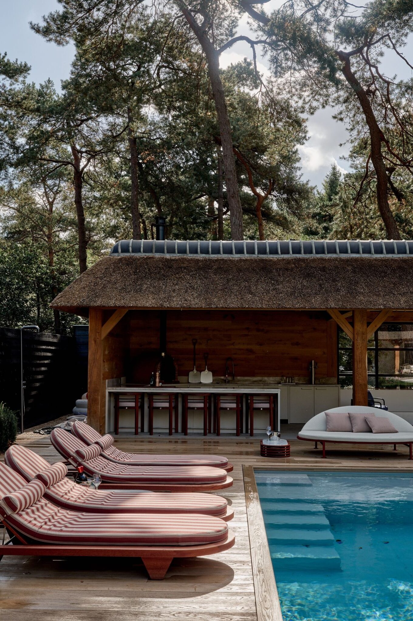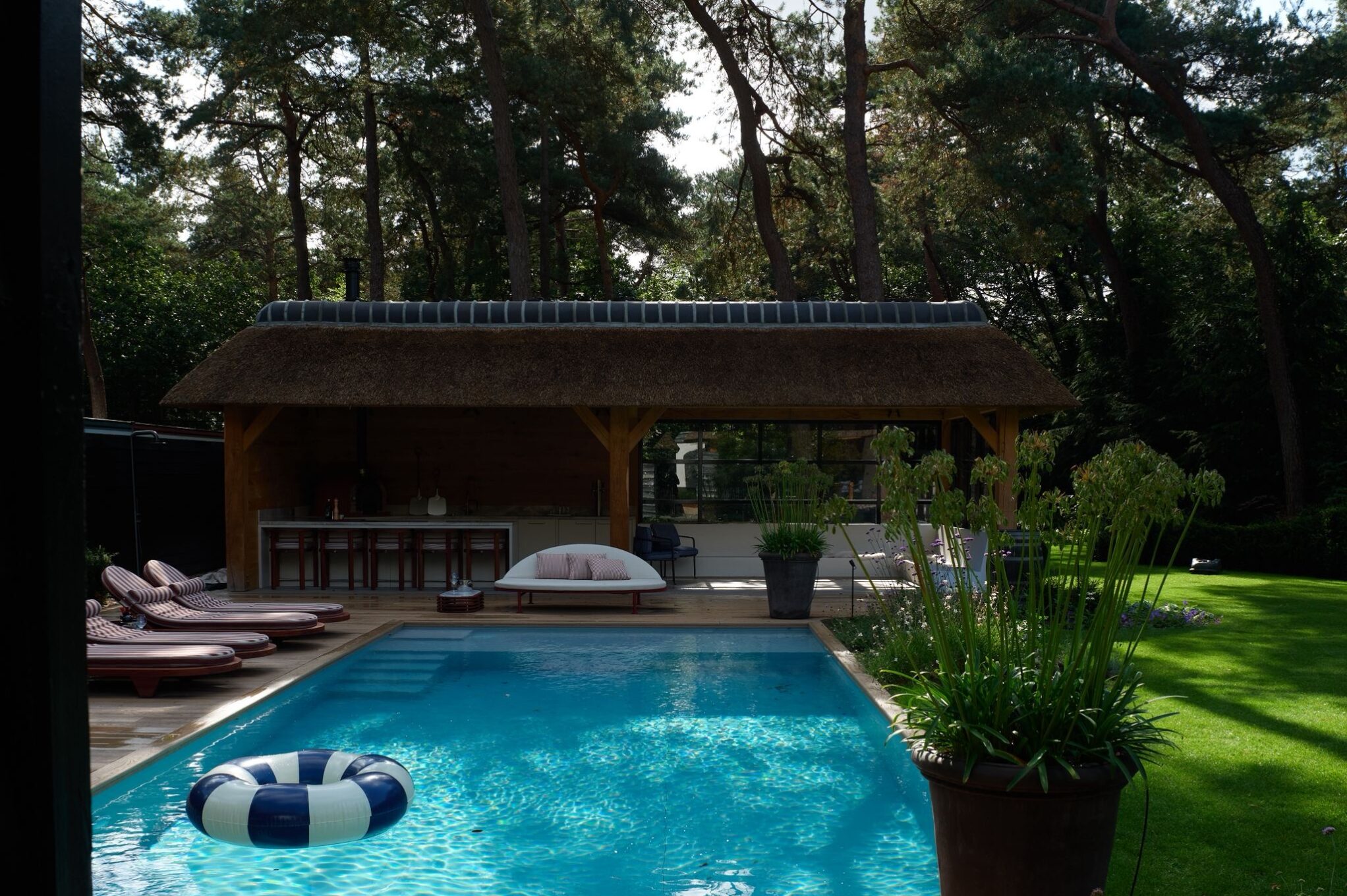 We renoveren een rietgedekte villa in de buitenwijken van Utrecht en herinrichten 600m² met een open indeling, gastensuites en luxe badkamers. De begane grond omvat een ruime keuken, een woonkamer en een rietgedekte veranda die binnen en buiten naadloos verbindt. In het souterrain komen een bioscoop, wijnkamer en gym. De tuin krijgt een nieuw poolhouse, terrassen en een zwembad. Het project wordt turn-key opgeleverd.